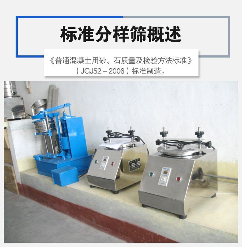 供應標準分樣篩供應分樣篩是按《普通混凝土用砂、石質量及檢驗方法標準》(JGJ52-2006),對顆粒性材料進行篩分試驗用的符合標準形狀和尺寸規格要求的系列樣品篩。標準篩篩孔為正方形或圓形,適用于測定碎石或卵石中的含泥量。