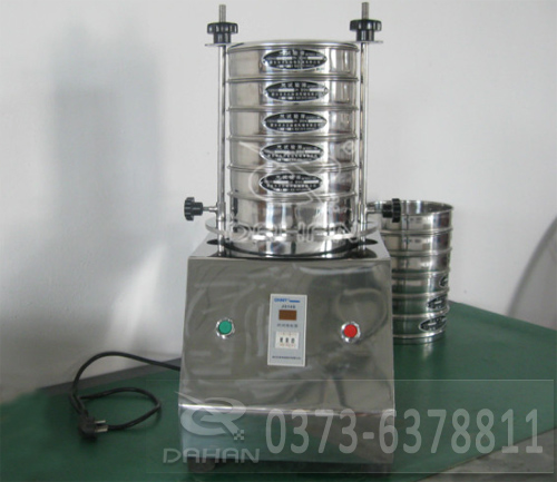試驗篩機是以YZU立式振動電機作為整機振動源,通過振動電機帶動上部振動盤振動,再通過振動盤傳導至安放在振動盤上部Φ200篩框上,然后由需要檢測目數的篩框把小于篩網孔徑的物料顆粒篩分至下層篩框,如此層層篩選,使每層試驗篩內只留相同粒度的物料,達到不同粒度的分離并確定此物料的粒度組成,使Φ200型篩框中的物料能非常有效的起到過濾、分級、篩分目的。